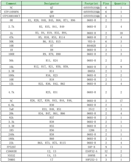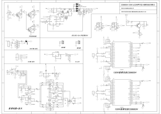 2、采用CS8683兩顆大功率單聲道D類音頻功放IC(單聲道100W用一顆),30V提供2*100W/4歐 ( THD+N=1%)持續(xù)功率輸出;