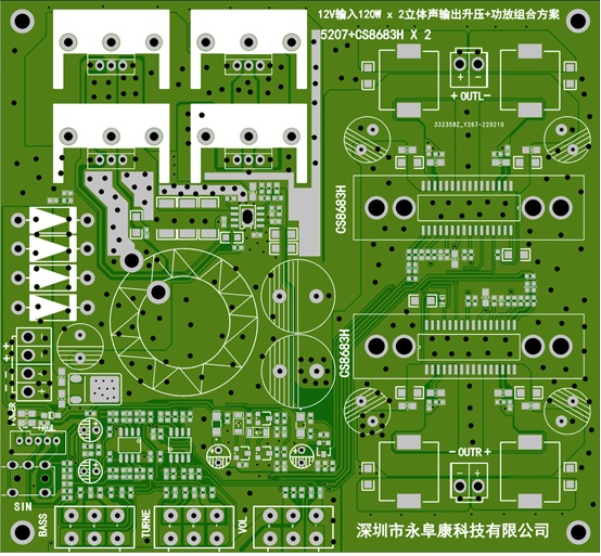 12V升30V大功率2x100W雙聲道D類音頻功放升壓組合解決方案