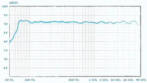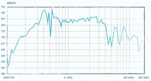 該圖表示在不同頻率下輸入恒定的功率會產(chǎn)生多少分貝的聲壓級,該圖相對平坦,整個(gè)頻譜范圍內(nèi)的變化最小。除了 70 Hz 以下的部分急劇下降外,該音頻設(shè)備在相同輸入功率下,會在 20 Hz 和 70 kHz 范圍內(nèi)產(chǎn)生穩(wěn)定的聲壓級。任何低于 70 Hz 的設(shè)備都會產(chǎn)生較低的聲壓級 (SPL) 輸出。