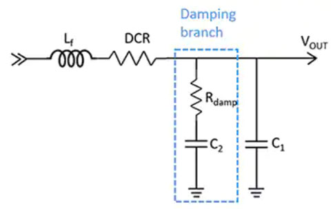 為了進(jìn)一步減少輸出電壓紋波,需要二級(jí)輸出濾波器,其電感電容 (LC) 濾波器與一級(jí)輸出電容器串聯(lián)(圖 6)。濾波電感 (Lf) 在預(yù)期的高頻范圍內(nèi)具有電阻性,以熱能的形式耗散噪音能量。該電感器與增加的并聯(lián)電容器組合成一個(gè)低通 LC 濾波網(wǎng)絡(luò)。
