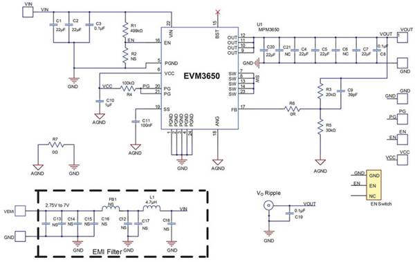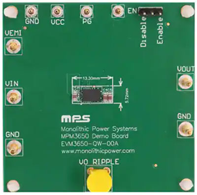 圖 12:使用 EVM3650-QW-00A 評(píng)估板,有意向的 MPM3650 DC/DC 模塊用戶可以快速評(píng)估其在應(yīng)用中的性能。(圖片來源:Monolithic Power Systems)