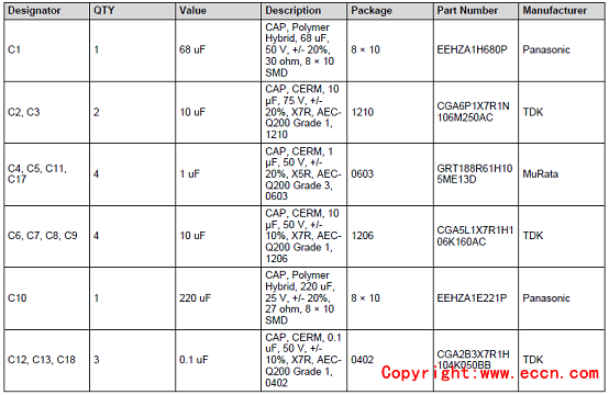 評(píng)估模塊TPS55288EVM-045材料清單: