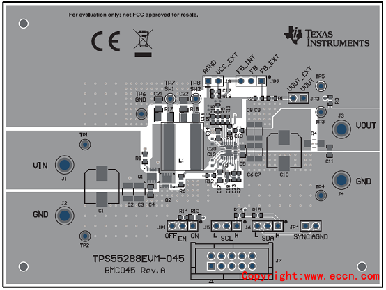 圖6.評(píng)估模塊TPS55288EVM-045 PCB設(shè)計(jì)圖:頂層布局