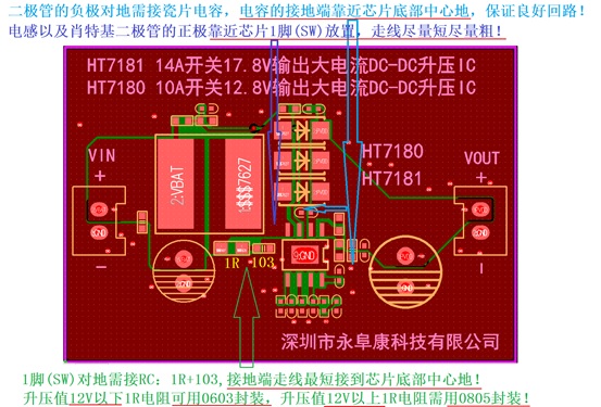 HT7180/HT7181 ESOP-8內(nèi)置MOS大電流升壓芯片layout參考以及注意事項(xiàng)