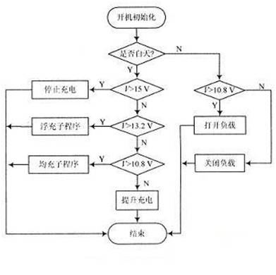 主程序主要完成對I/O、定時器和PWM的初始化,同時根據(jù)電池板和蓄電池的狀態(tài)調用相應的充放電子程序?刂破鲄(shù)的測量主要由中斷服務程序完成。