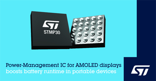 意法半導(dǎo)體為AMOLED 顯示器新開發(fā)的高集成度電源管理芯片 (PMIC)兼?zhèn)涞挽o態(tài)電流和高靈活性,可延長便攜式設(shè)備的電池續(xù)航時(shí)間。