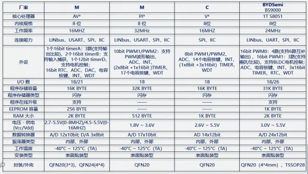 8位車規(guī)MCU資源對比