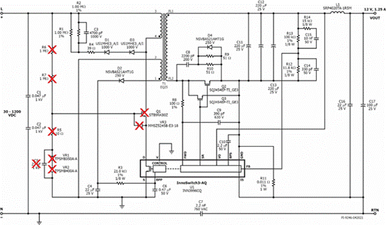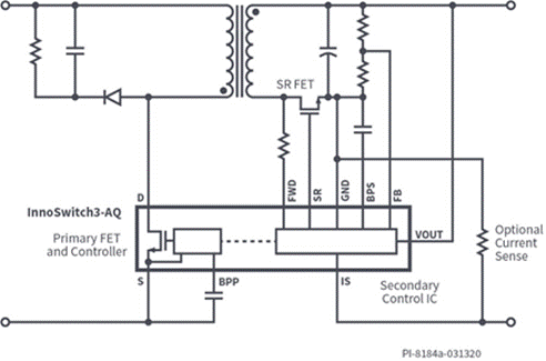 圖1:InnoSwitch3-AQ 1700V器件可實現(xiàn)簡單、加強絕緣的汽車電源