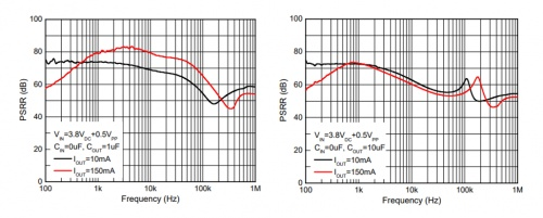 PSRR: 74dB @ 1KHz, 58dB @ 1MHz, VOUT=2.8V