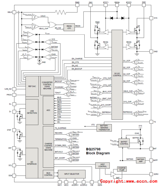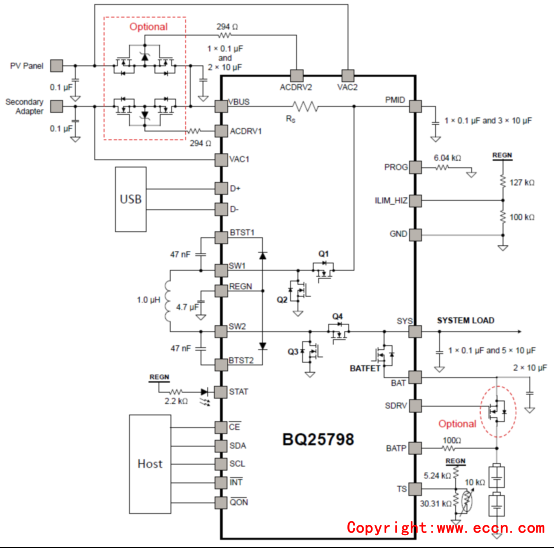 圖5. BQ25798應(yīng)用框圖:單輸入源,備份模式和有FET