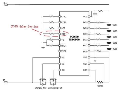 圖2. SC5550支持外部電阻調(diào)節(jié)OVP和UVP延時