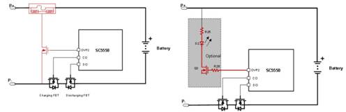 由于振動或其它機(jī)械應(yīng)力等原因,在多串電池包里電芯連接線及NTC連線有可能斷開,一旦斷開會導(dǎo)致電芯電壓和溫度檢測異常。SC5550支持電芯斷線檢測功能,支持溫度檢測NTC斷線檢測。當(dāng)檢測到電芯連接線斷開或者NTC連接線斷開,SC5550將關(guān)斷充電及放電通路,直到錯誤狀態(tài)恢復(fù)。