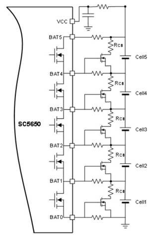多串電池在使用中容易產(chǎn)生電芯不均衡問題,影響電池的使用壽命。與SC5550 同系列的SC5650, 在支持SC5550的基礎(chǔ)上,集成了100mA 的均衡功能。如需更高均衡電流,也可通過外加MOSFET拓展外部均衡電路。