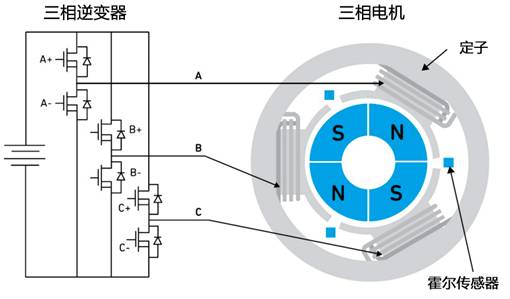 這個(gè)復(fù)雜的電路會(huì)提取轉(zhuǎn)子的位置信息,以電子方式對(duì)齊兩個(gè)磁場(chǎng)。對(duì)于三相 BLDC 電機(jī),該模塊通常由微控制器和三相逆變器功率級(jí)組成,采用傳感器(如霍爾傳感器)來提取轉(zhuǎn)子的位置信息。增加這種電路確實(shí)會(huì)占用一些空間,并導(dǎo)致成本增加。然而,制造商也看到了擺脫束縛的好處,消費(fèi)者也需要這些類型的電機(jī)解決方案。因此,越來越多的電動(dòng)工具開始使用三相 BLDC 電機(jī)拓?fù)浣Y(jié)構(gòu)進(jìn)行設(shè)計(jì)。