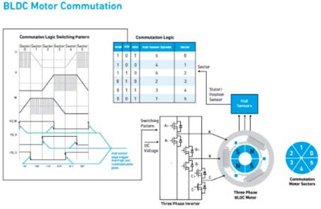 圖 3:BLDC 電機(jī)沒有物理換向器,必須使用換向邏輯時(shí)序。