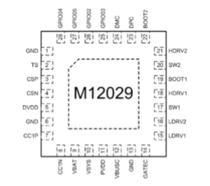 M12029 是一款面向小家電/電動工具快充的專用SOC,集成了同步開關(guān)升壓變換器、快充協(xié)議控制器、電池充放電管理、電池電量計算、電量顯示、電機控制等功能模塊,支持PD3.1、QC3.0、AFC、FCP、SCP等快充協(xié)議,最大充電功率140W,并提供輸入過壓/欠壓、過溫、過流保護等完備的保護功能。配合簡單的外圍電路,即可組成2-8串鋰電池及磷酸鐵鋰電池的快充方案。