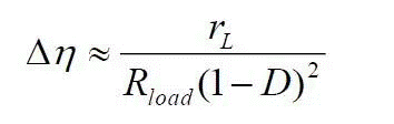 在大負(fù)載情況下,電感的串聯(lián)電阻會極大地影響轉(zhuǎn)換效率,假設(shè)電感的電阻為rL,負(fù)載電阻為Rload,那么在電感的功率損耗大致如下式計算: