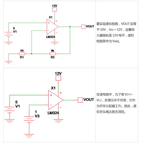 在某些閉環(huán)條件下,當(dāng)輸出匹配限制超過運算放大器 Vcc 和 Vee 電源范圍時,虛擬接地和虛擬短路概念也將失效。