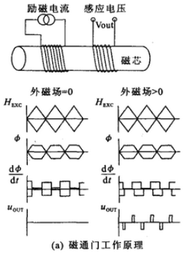 磁通門傳感器是利用被測磁場中高導(dǎo)磁鐵芯在交變磁場的飽和激勵下,其磁感應(yīng)強度與磁場強度的非線性關(guān)系來測量弱磁場的一種傳感器。