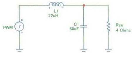 圖1使用標(biāo)準(zhǔn)值Q=0.707 RL= 4歐姆Fc = 40 KHz的單端LC輸出濾波器