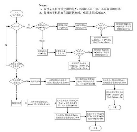插入電池(開機)→→是否電池校準(默認否)→→否→→調(diào)用電池容量曲線a(默認)(若使用電池B,則修改為使用電池容量曲線b)→→通過電池端電池Vcc以及監(jiān)測耗電量聯(lián)合評估剩余電量百分比。