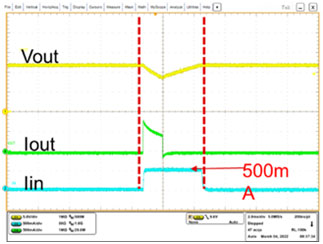 圖3.  輸入平均電流限流功能(測試條件:Vin=5V; Vout=12V; Ilimit=0.5A)