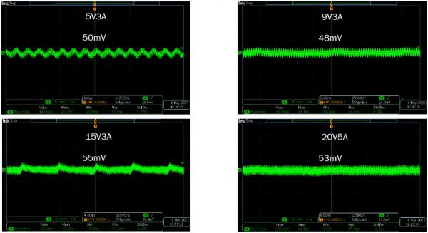 圖5:100 W USB PD適配器參考設(shè)計(jì)在90 VAC時(shí)的紋波