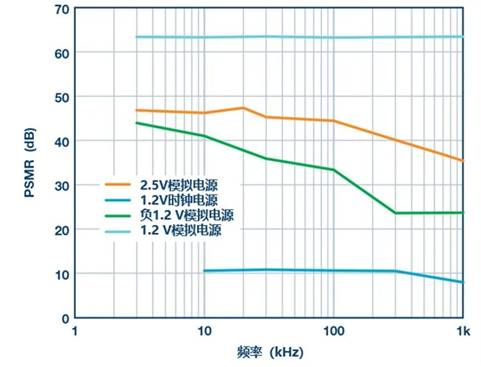 電源抑制性能衡量負(fù)載對電源變化的靈敏度,可用于這里的相位噪聲分析。然而,這里使用的不是抑制比,而是調(diào)制比:電源調(diào)制比(PSMR)。當(dāng)然,傳統(tǒng)的電源抑制比(PSMR) 依舊有參考意義。