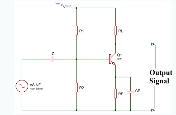 A類是最常見(jiàn)的功率放大器配置,它僅由一個(gè)設(shè)置為始終保持開(kāi)啟的開(kāi)關(guān)晶體管組成,產(chǎn)生輸出信號(hào)的最小失真和最大幅度。A類推挽放大器的效率非常低,接近30%。即使沒(méi)有連接輸入信號(hào),A類推挽放大器的級(jí)也允許相同數(shù)量的負(fù)載電流流過(guò)它,因此輸出晶體管需要大型散熱器。A類推挽放大器的電路圖如下: