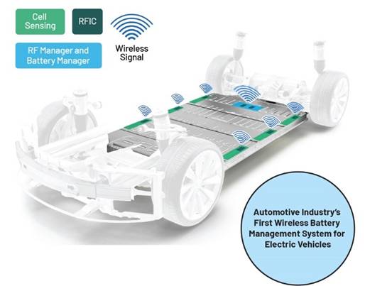 圖1.使用無線電池管理系統(tǒng)(wBMS)的電動汽車