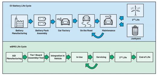 圖2.電動汽車電池生命周期及其相關(guān)的wBMS生命周期