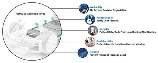 只有在電動汽車電池的全生命周期內(nèi)確保從器件到網(wǎng)絡(luò)的安全性,才能實現(xiàn)wBMS技術(shù)的全部優(yōu)勢?紤]到這一點,安全性要求采取系統(tǒng)級設(shè)計理念,涵蓋過程和產(chǎn)品。