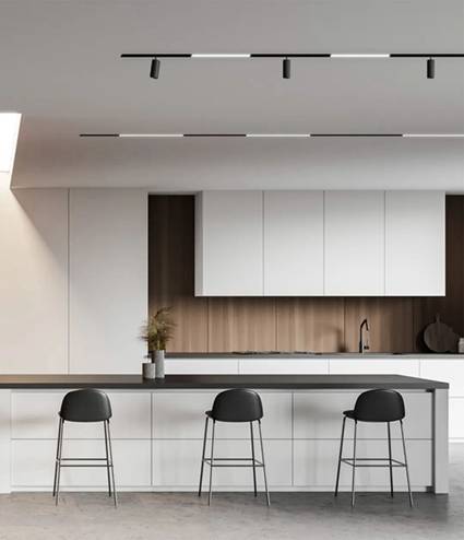 無主燈照明指在空間照明中摒棄傳統(tǒng)的吸頂燈、大吊燈,根據(jù)空間的照明需求,采用筒燈、射燈、燈帶、軌道燈、落地燈等點光源和線光源進行組合搭配,打造“見光不見燈”的照明環(huán)境。與傳統(tǒng)的燈光設計相比,無主燈照明可實現(xiàn)基礎功能性照明和局部重點照明,更有層次感、氛圍感、高級感。