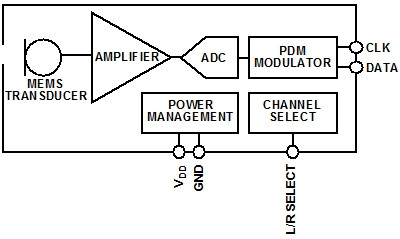 對于模擬MEMS麥克風(fēng)來說,圖1所示的這種電路基本上是一個具有特殊輸出阻抗的放大器。在數(shù)字MEMS麥克風(fēng)中,這個放大器與模數(shù)轉(zhuǎn)換器(ADC)集成在一起,以脈沖密度調(diào)制(PDM)或I2S格式提供數(shù)字輸出。