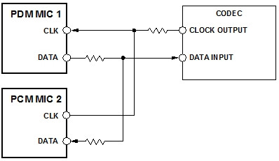 圖7:PDM麥克風(fēng)以源端接方式連接到編解碼器