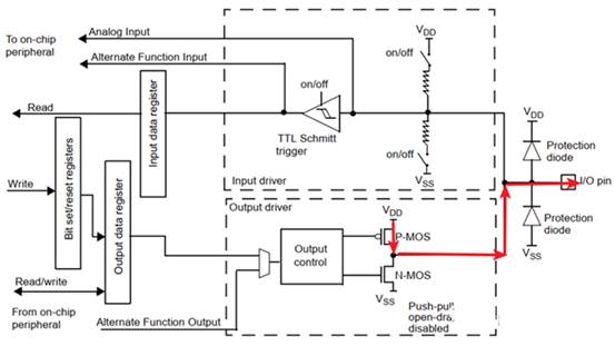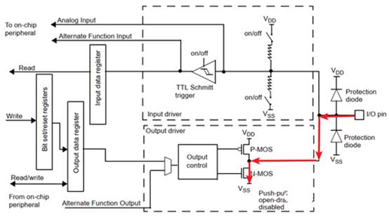 要回答以上問題,需要先了解MCU內(nèi)部的I/O結(jié)構(gòu),