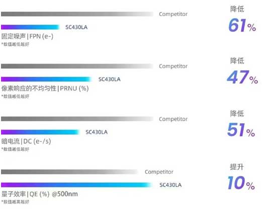 另一方面,憑借思特威創(chuàng)研的超低噪聲外圍讀取電路技術(shù)及升級(jí)的色彩工藝,SC430LA可實(shí)現(xiàn)出色的噪聲控制和色彩呈現(xiàn)效果。其固定噪聲(FPN)與像素響應(yīng)的不均勻性(PRNU)分別可降至0.28e-與0.53%,相比業(yè)內(nèi)同類產(chǎn)品,暗電流大幅降低51%,顯著提升產(chǎn)品捕獲到的圖像質(zhì)量,呈現(xiàn)更高的顏色精準(zhǔn)度和更豐富的圖像細(xì)節(jié),能夠充分滿足工業(yè)應(yīng)用對(duì)高精度傳感器的要求。