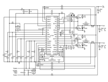3.3V 直流母線在寬帶網(wǎng)絡(luò)系統(tǒng)中廣受歡迎,用于各種較低電壓,為 DSP、ASIC 和 FPGA 供電。這些較低的電壓范圍為1V至2.5V,通常需要高負載電流。為了保持高轉(zhuǎn)換效率,降壓轉(zhuǎn)換器的功率MOSFET導通損耗必須降至。問題在于,3.3V總線還頻繁使用亞邏輯電平MOSFET。這種MOSFET具有相對較高的RDS(ON),將轉(zhuǎn)換器的滿載效率限制在 85% 左右。更有效的解決方案是使用邏輯電平MOSFET,其R值非常低DS(ON)但需要一個 5V 電源。LTC1876 通過將一個 1.2MHz 升壓型穩(wěn)壓器 (其從一個 3.3V 輸入產(chǎn)生一個 5V 偏置電源)與兩個提供低電壓輸出的降壓型控制器相結(jié)合,允許使用邏輯電平 MOSFET。通過將所有三個穩(wěn)壓器集成到單個 IC 中,LTC1876 實現(xiàn)了小型且成本低廉的高效電源。