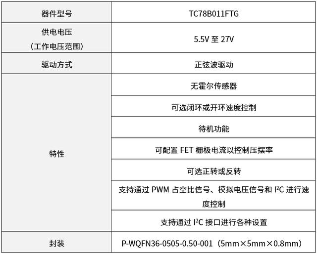 同時東芝還批量生產(chǎn)采用無霍爾傳感器控制的方波驅(qū)動方式的TC78B009FTG。用戶可以根據(jù)自己的電機驅(qū)動方式選擇合適的產(chǎn)品。