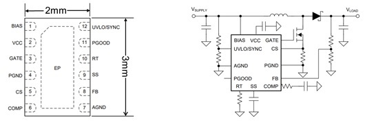 圖4. LM5155封裝示意圖 圖5. LM5155升壓應(yīng)用電路圖