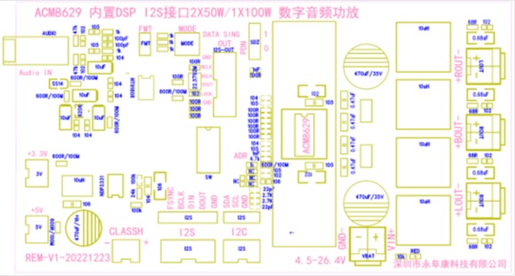 | ACM8629 單聲道100W/立體聲50W內(nèi)置DSP音頻算法的I2S數(shù)字輸入D類(lèi)功放IC解決方案 |