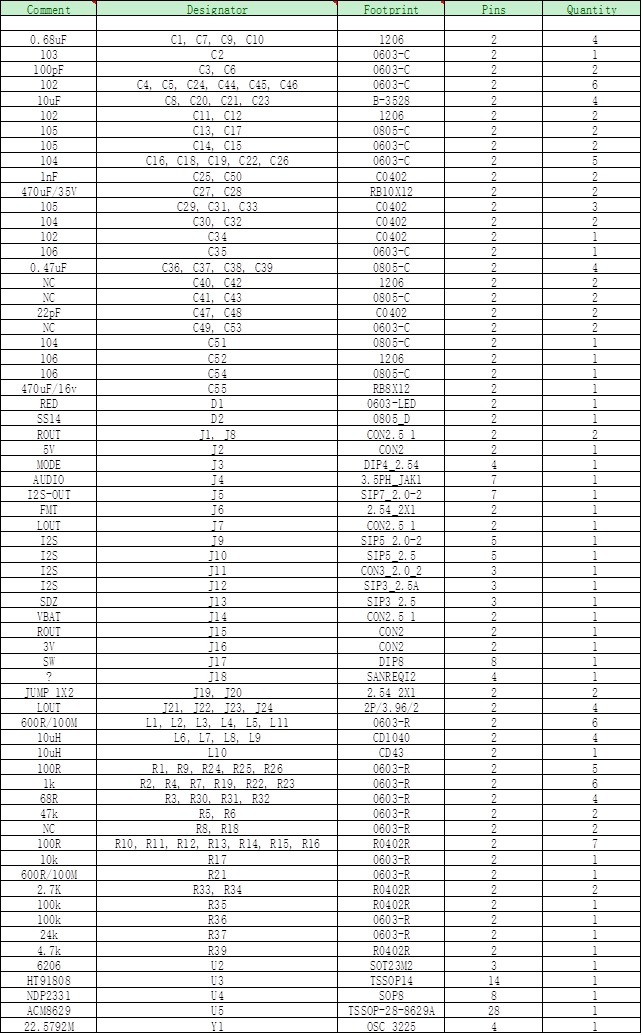 7、ACM8629 DEMO板物料清單
