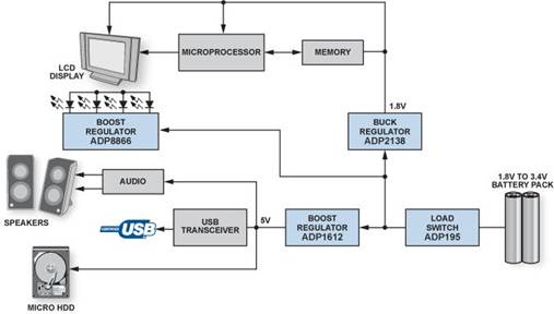 圖1.典型的低功耗便攜式系統(tǒng)。