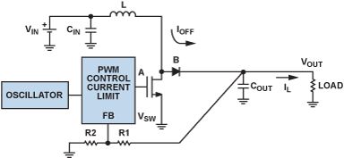 電流限制:升壓轉換器通常指定峰值電流限制,而不是負載電流。請注意,兩者之間的差異越大V在和V外,可用負載電流越低。峰值電流限值、輸入電壓、輸出電壓、開關頻率和電感值都設置了最大可用輸出電流。
