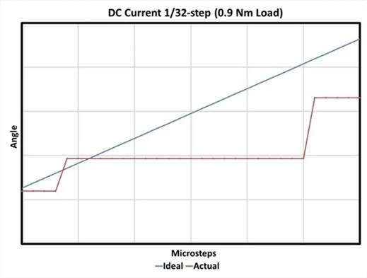 圖 6具有 0.9 Nm 扭矩的 1/32 步進(jìn)需要更多的微步來移動電機(jī)。資料:單片電源系統(tǒng)