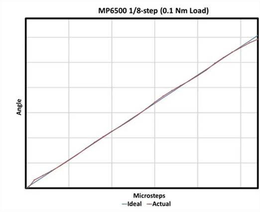 圖 9在第二個測試中,MP6500 使用 1/8 步長和 0.4 Nm 扭矩。資料:單片電源系統(tǒng)