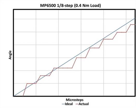 另一個誤差是步進(jìn)電機(jī)控制器的電流調(diào)節(jié)精度。典型的步進(jìn) IC 到滿量程電流的 5% 左右。此外,兩個通道之間的電流調(diào)節(jié)匹配可能并不完美。這些不準(zhǔn)確的結(jié)果降低了定位精度。