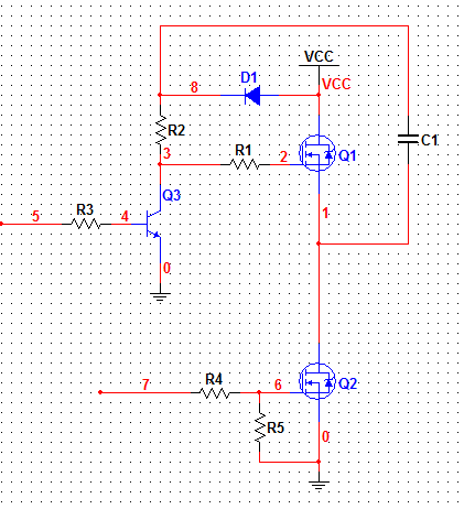 上圖用比較簡單的方式實現(xiàn)上臂的自舉升壓,D1為自舉二極管,一般采用快恢復(fù)二極管,C1為自舉電容,具體大小可參考公式