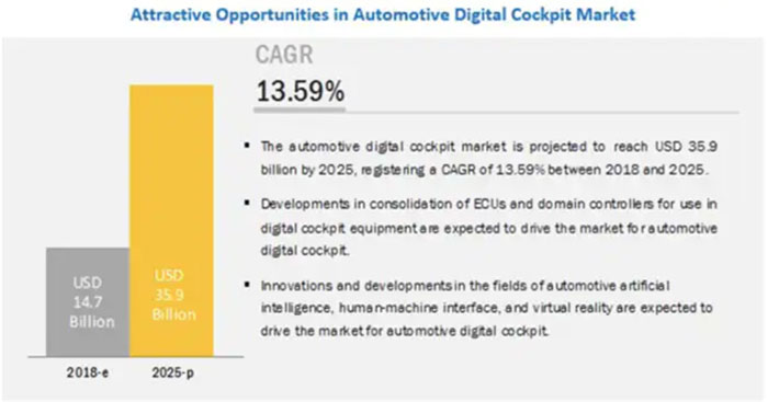 圖1:汽車智能座艙市場(chǎng)增長(zhǎng)前景廣闊 (圖源:MarketandMarket)