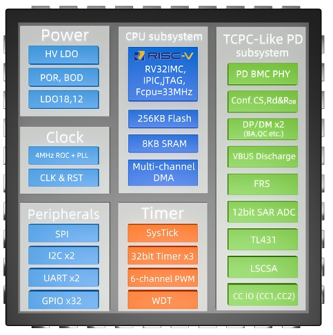 UM3506芯片集成了USB PD 3.0, PD3.1控制器和一個更加具有開放性,靈活性的RISC-V 內(nèi)核處理器。該系列產(chǎn)品可以用來支持增強型PD應用。該款芯片全面滿足USB開發(fā)者論壇組織定義的USB3.1標準集里面的相關(guān)規(guī)范。